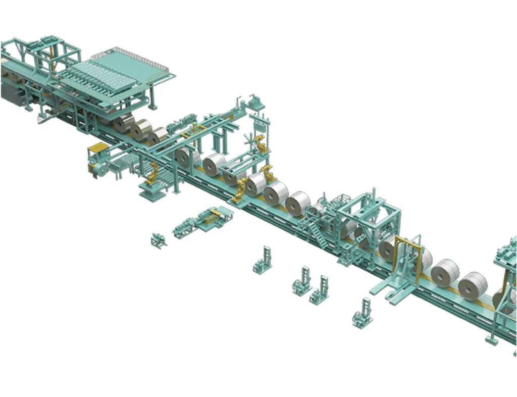 코일 포장에 필요한 포장지를 자동으로 선택, 절단하여 공급, 대기하며 이후 직교자 로봇이 포장에서 테이핑까지의 공정을 자동으로 수행하는 무인 자동화 설비.